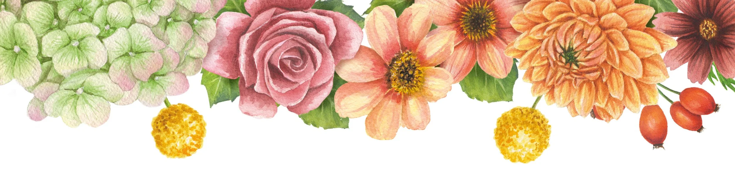The brief was to design a bespoke wedding stationery suite inspired by the bride’s autumn colour palette, the flowers chosen for her bouquet and her love of watercolour illustration.